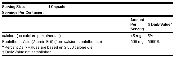 Пантотенова кислота як складова коферменту А, який відіграє ключову роль у метаболізмі вуглеводів, білків та жирних кислот, нормалізує обмін жирів, активує окислювально-відновні процеси в організмі і тому важлива для підтримки і відновлення всіх клітин тканин. Синтезує в організмі життєво важливі жирні кислоти, статеві гормони і гормони росту, холестерин, гістамін, ацетилхолін, гемоглобін.